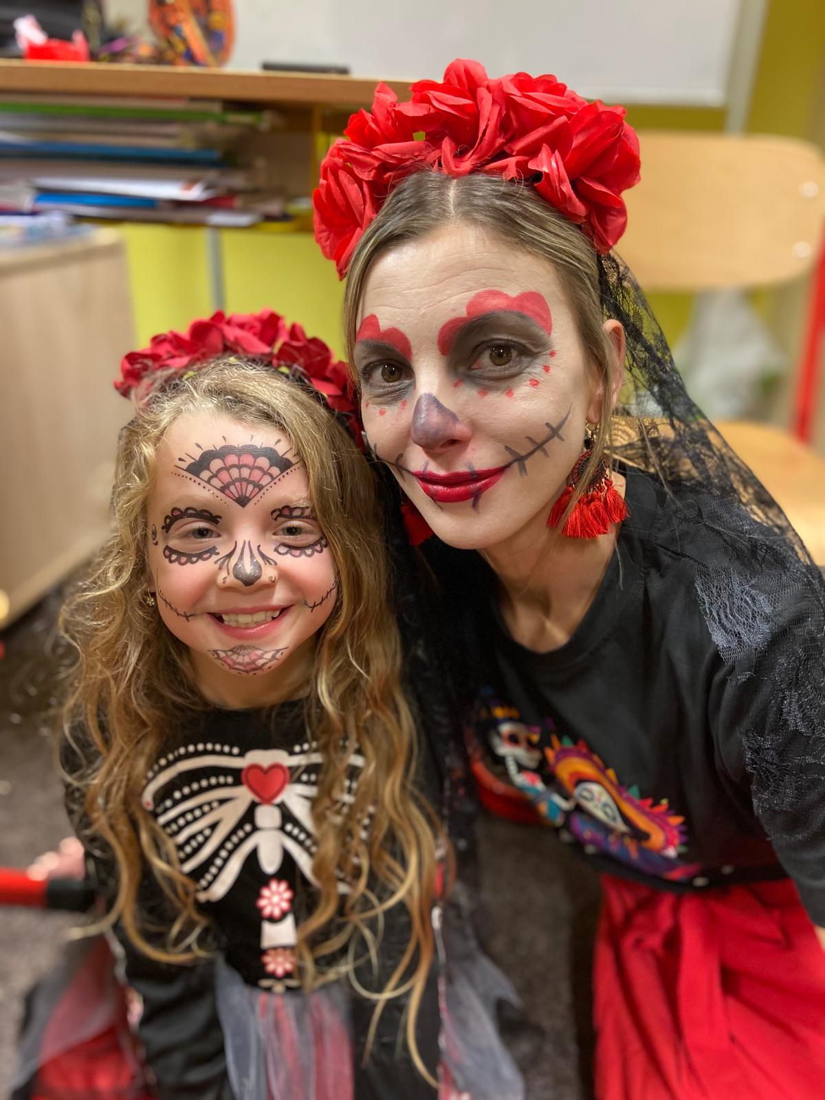 Naše škola se na jeden den proměnila v barevnou oslavu inspirovanou mexickým svátkem Día de los Muertos. Nechyběly nádherné a nápadité masky, květinové dekorace, malování obličejů ani spousta smíchu.